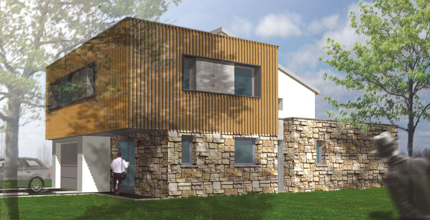 Avantage de faire appel à un architecte ou un constructeur comme Trabeco : on vous soumet plusieurs projets et on choisit celui qui plait le plus. C’est ce qui s’est passé avec cette maison contemporaine.